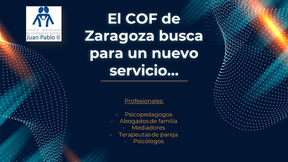 El Centro de Orientación Familiar Juan Pablo II es una organización sin ánimo de lucro a disposición de las personas y las familias aragonesas que se enfrentan a crisis o desajustes interpersonales.